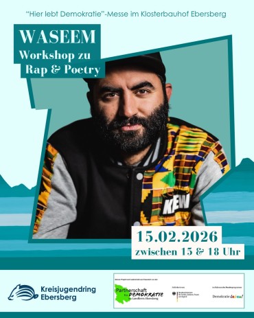 Ab 15:00 Uhr startet die Demokratie-Messe „Hier lebt Demokratie“ mit verschiedenen Workshops und Angeboten.